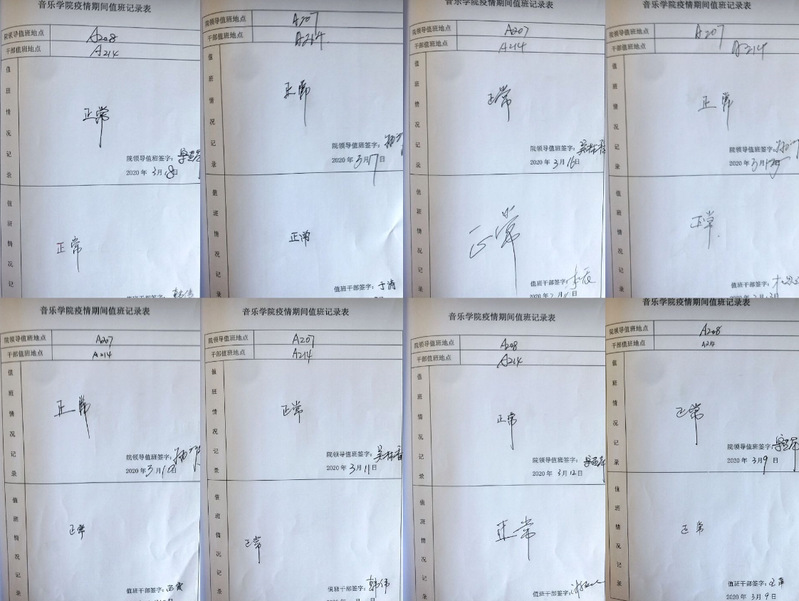 扎实推进疫情日报制度。仔细梳理师生基本情况,掌握师生职工动向,做到重点关注在编师生管控,密切掌握其他人员状况,精准落实每日疫情防控“零报告”制度,守护音院净土,确保生命安全。