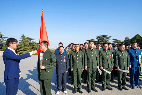 淮塔前,100余名退役军人重温军人誓词,他们高高举起右拳,庄严宣誓:“若有战招必回!若有战招必回!若有战招必回!”三句誓言,一句比一句嘹亮,一句比一句激昂,一句比一句坚定。在烈士纪念塔前,向伟大的英雄革命烈士三鞠躬,走向塔前,俯身向先烈们献上白菊,整理花篮挽联,向英雄致敬。大家大家怀着崇敬的心情瞻仰了在战役中英勇牺牲的烈士英名录。最后一站来到淮海战役纪念馆,馆内陈列了大量战斗中使用的武器装备,指挥命令、电报和嘉奖令,战地宣传材料和奖旗等资料,讲解员介绍了战役概况,是内容丰富、讲解生动的爱国主义教育场所。