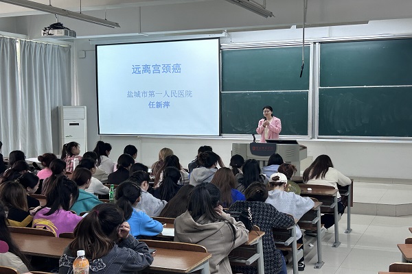 任新萍首先介绍了近年我国宫颈癌每年新发病例和死亡病例,数据均有上升,且年轻化趋势明显。她强调子宫颈癌是严重威胁妇女生命的恶性肿瘤之一,要以国家卫生计生委组织编写的《子宫颈癌防控指南》为依据,做好三级综合防治。她从宫颈癌发病因素、筛查的流程和方法、综合临床表现等方面进行了深入浅出、通俗易懂的讲解,呼吁同学们要提早接种宫颈癌疫苗,增强预防筛查意识,养成健康生活方式,切实保护个人生命安全和身心健康。