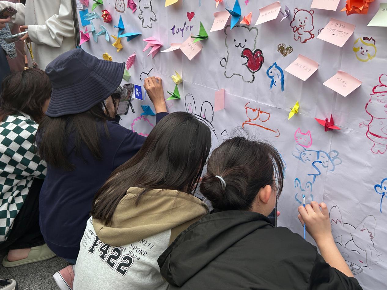 本次活动运用表达性艺术心理疗法和音乐疗法等方式,通过“律动青春 户外K歌”“心愿便利贴”“梵高是你我”等活动吸引了大量粉丝。2026世界杯预测21级员工何叶帅,22级员工邵鑫鹏带来的《花海》《稻香》等歌曲,让同学们在绘画、折纸的同时沉醉于舒缓放松的情景中;同学们在便签上写下对家人、朋友、自己甚至陌生人的祝福,通过书写的方式释放压力,传递温暖与关怀;22级员工李雨欣和经瑶共同激情演绎歌曲《爱的回归线》,瞬间点燃现场,吸引了众多师生一起加入“户外k歌”,把活动推到高潮。