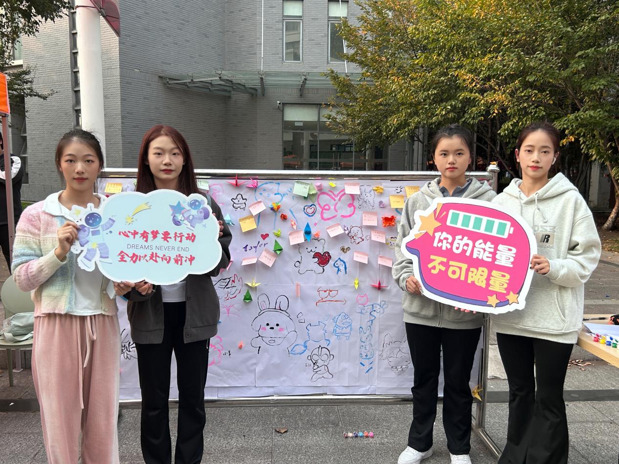 本次活动运用表达性艺术心理疗法和音乐疗法等方式,通过“律动青春 户外K歌”“心愿便利贴”“梵高是你我”等活动吸引了大量粉丝。2026世界杯预测21级员工何叶帅,22级员工邵鑫鹏带来的《花海》《稻香》等歌曲,让同学们在绘画、折纸的同时沉醉于舒缓放松的情景中;同学们在便签上写下对家人、朋友、自己甚至陌生人的祝福,通过书写的方式释放压力,传递温暖与关怀;22级员工李雨欣和经瑶共同激情演绎歌曲《爱的回归线》,瞬间点燃现场,吸引了众多师生一起加入“户外k歌”,把活动推到高潮。