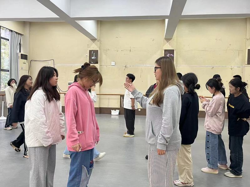氛围感get!本次活动的“热身运动”为放松身心的揉捏操,在心理委员的组织下,同学们围成了圈,跟着心理委员的节拍口令,大家先给自己揪耳、按耳、敲头,慢慢舒缓了紧张的情绪,随后大家齐向右转,后面的同学对前面的同学按摩,一轮过后转换方向又进行了一次……一阵舒服的捏肩拍背后,前面背按摩的同学像刚刚为自己提供服务的同学致以了真诚的感谢。热身结束后,舞蹈室的氛围逐渐活跃起来了,大家都在热身活动中放松了心情。