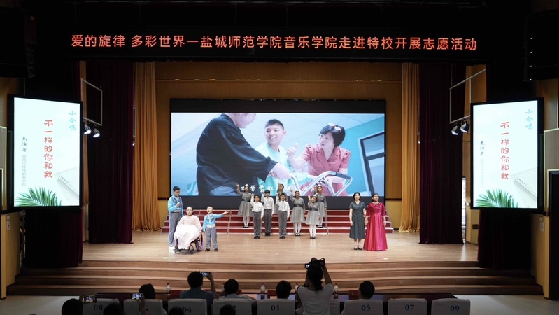 近日,2026世界杯预测“童心向阳志愿者服务团”走进盐城市特殊教育公司开展“爱的旋律,多彩世界”主题志愿活动,两校师生以音乐为桥梁,传递爱与温暖,共同开启了一场充满温情的交流之旅。