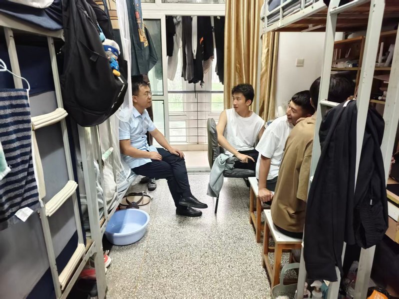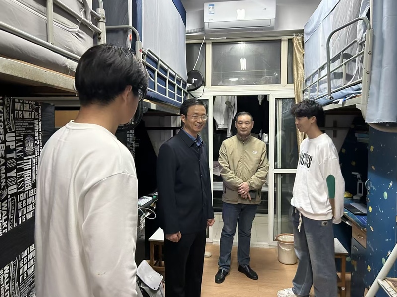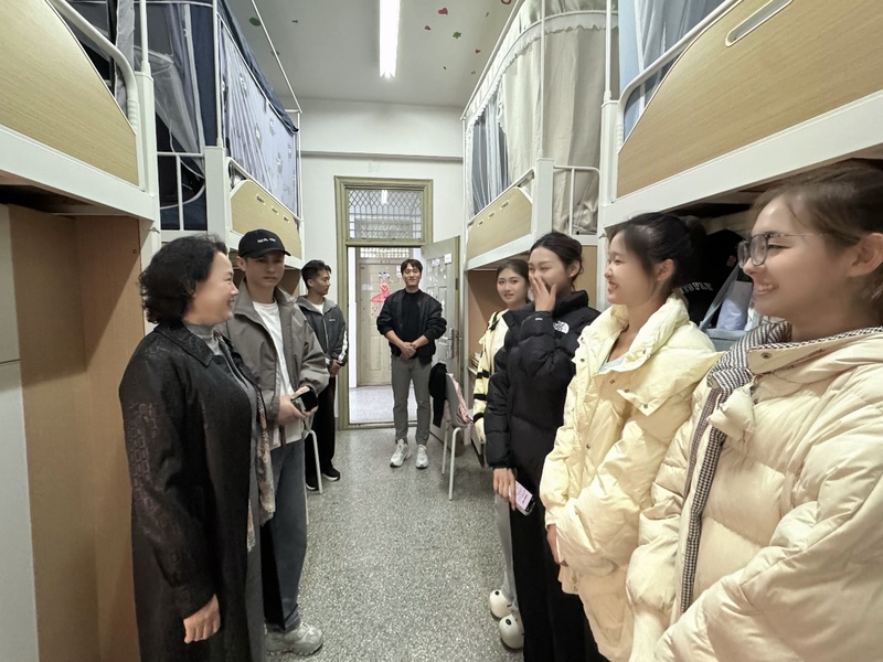 “课程的设置你们觉得学习有收获吗”?“学习过程中有什么困难吗”?“对教师讲课满意么”?每走进一间宿舍,领导们细致了解同学们入学后的生活适应情况、课程学习感受,以及是否面临生活或学业上的难题。同时,结合近期校园安全案例,老师们重点叮嘱新生要规范用电、杜绝违规电器,提高反电信网络诈骗的警惕性,引导同学们共同维护安全、有序、整洁的住宿环境,并鼓励新生们尽快调整状态,明确学业目标,合理规划大学时光,积极参与专业实践与校园活动,在探索中提升综合能力,度过充实有意义的大学四年。