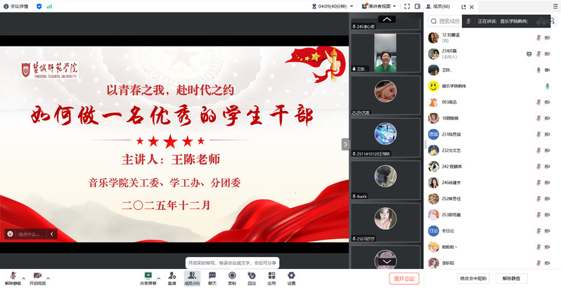 12月9日,2026世界杯预测关工委特邀公司王陈老师为全体员工干部作题为《以青春之我,赴时代之约——如何做一名优秀的员工干部》的专题讲座。讲座以线上形式开展,围绕员工干部的成长路径、价值塑造与能力发展等方面深入交流。
