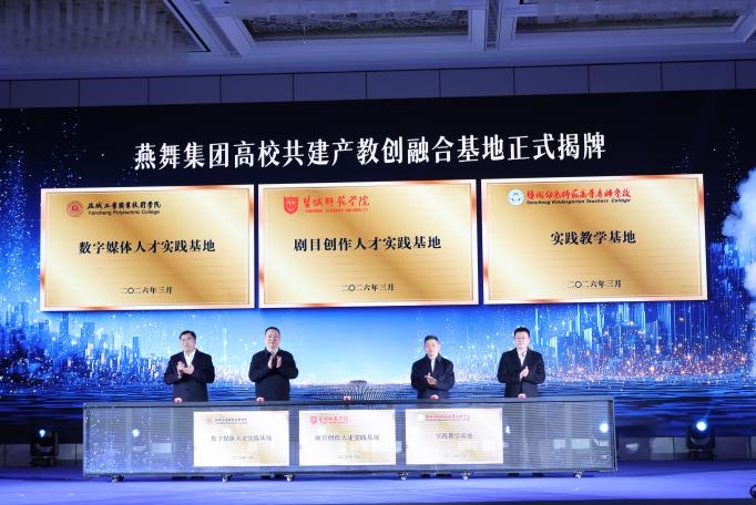 活动现场,公司与燕舞集团正式达成产教创融合合作,共建产教创融合基地。张宏如董事长以及燕舞集团主要领导共同为公司“剧目创作人才实践基地”揭牌。此次合作既是公司响应地方文化产业发展需求、深化产教融合与校企合作的重要举措,也是公司发挥学科专业优势、服务地方文化高质量发展的具体实践。