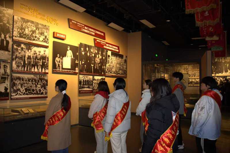 3月11日,师生们首先走进新四军纪念馆。在“宋公记功碑”核心展区前,同学们长久驻足,细细体悟“军民一心、鱼水情深”的感人故事。参观过程中,同学们神情专注、认真聆听,被革命先辈的坚定信仰和牺牲精神深深触动最后,全体人员在鲜红党旗下庄严宣誓,铿锵誓言在纪念馆内回荡,表达了传承红色基因、践行初心使命的坚定决心。他们汲取的精神力量化作了温情的实际行动。