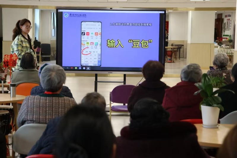 演出结束后,同学们还与老人们亲切交谈,询问他们的身体和生活状况,倾听他们年轻时的故事。针对老人们在使用智能设备时遇到的困扰,同学们贴心地讲解人工智能技术在生活中的简单应用,手把手教他们如何使用“豆包”等实用工具,帮助他们跨越数字鸿沟。现场欢声笑语不断,温馨融洽的氛围感染着每一个人。