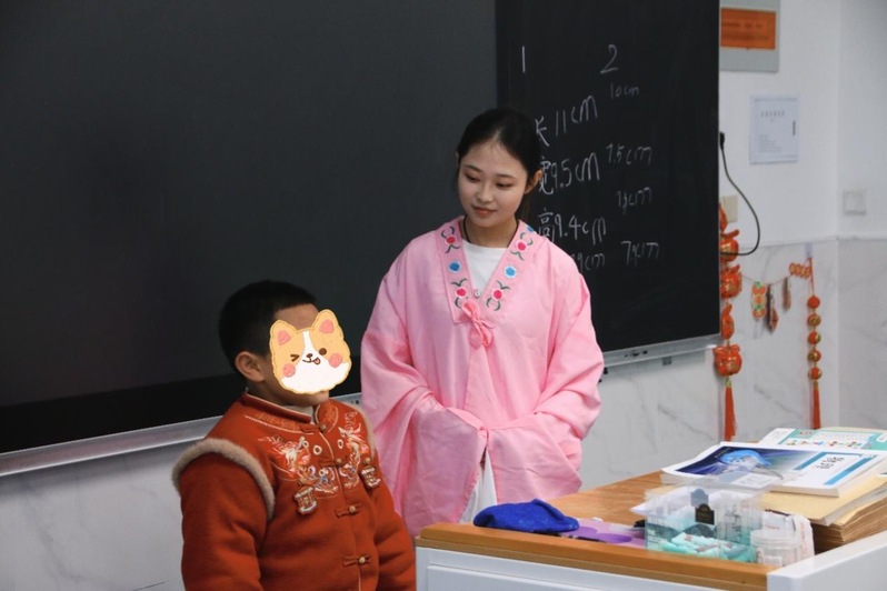 活动现场暖意融融,欢声笑语不断。公司龚同学立足专业特色,化身非遗“小老师”,为孩子们带来一堂趣味盎然的淮剧体验课。她耐心讲解淮剧经典唱段的韵味与要领,手把手传授戏曲身段、手势眼神及基础表演技巧,通过示范模仿、互动跟练等方式,让地方戏曲走进特教校园。孩子们在轻松愉悦的氛围中感受淮剧的独特魅力,在一招一式、一唱一念间领略非遗文化的深厚底蕴,让传统艺术在童心中生根发芽。