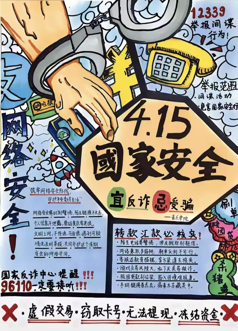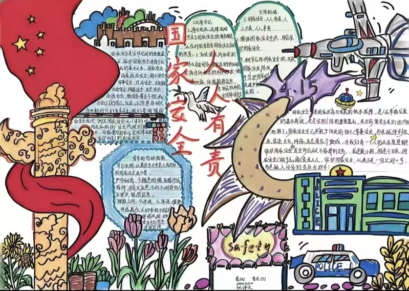 公司发起“国家安全我来‘绘’”手抄报创作活动,号召员工以笔为媒,诠释对国家安全的理解。同学们将专业特长与安全主题深度融合,作品主题丰富多元:有的以“家国永安”为核心,用图案搭配“国家安全,全民有责”的文字标语;有的聚焦网络安全,通过漫画形式警示钓鱼链接、信息泄露等风险。“创作过程中,我查阅了很多国家安全知识,不仅提升了专业技能,更强化了责任意识”,创作同学分享道。